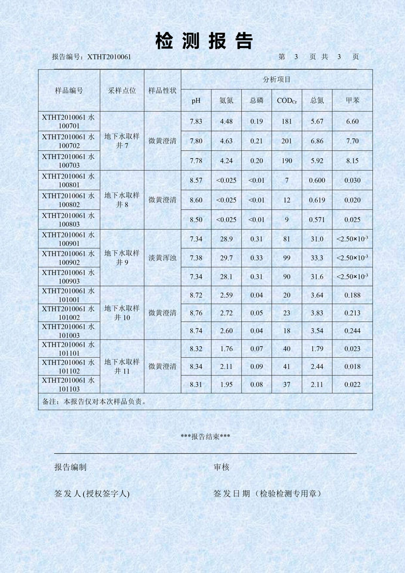 【概要描述】本报告依据国家有关法规、标准、协议和技术文件进行编制。本单位保证检测工作的公正性、独立性和可靠性,对检测的数据负责;不对部分摘录或引用本报告的有关数据造成的后果负责。